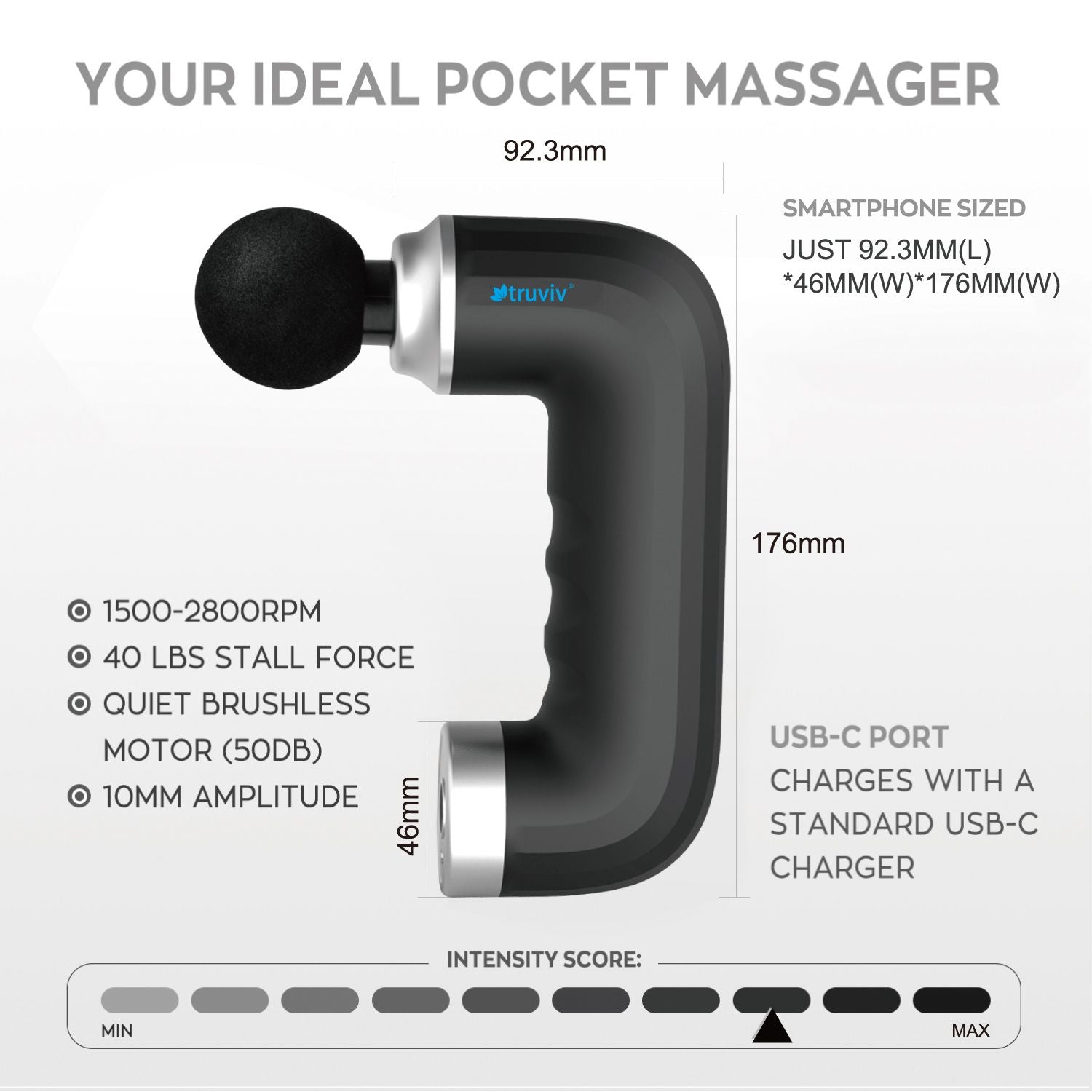 Weight - Truviv Ultra weighs 0.5kgs. Do have a feel of the weight of the devices before making a decision. If you're concerned about the weight as soon as you pick it up, you'll be feeling it a lot more 2 minutes into your massage. Try to target hard-to-reach areas as they require you to get into an awkward position. If you can't maintain the position of the massage gun for long then you're better off enlisting the help of a partner.