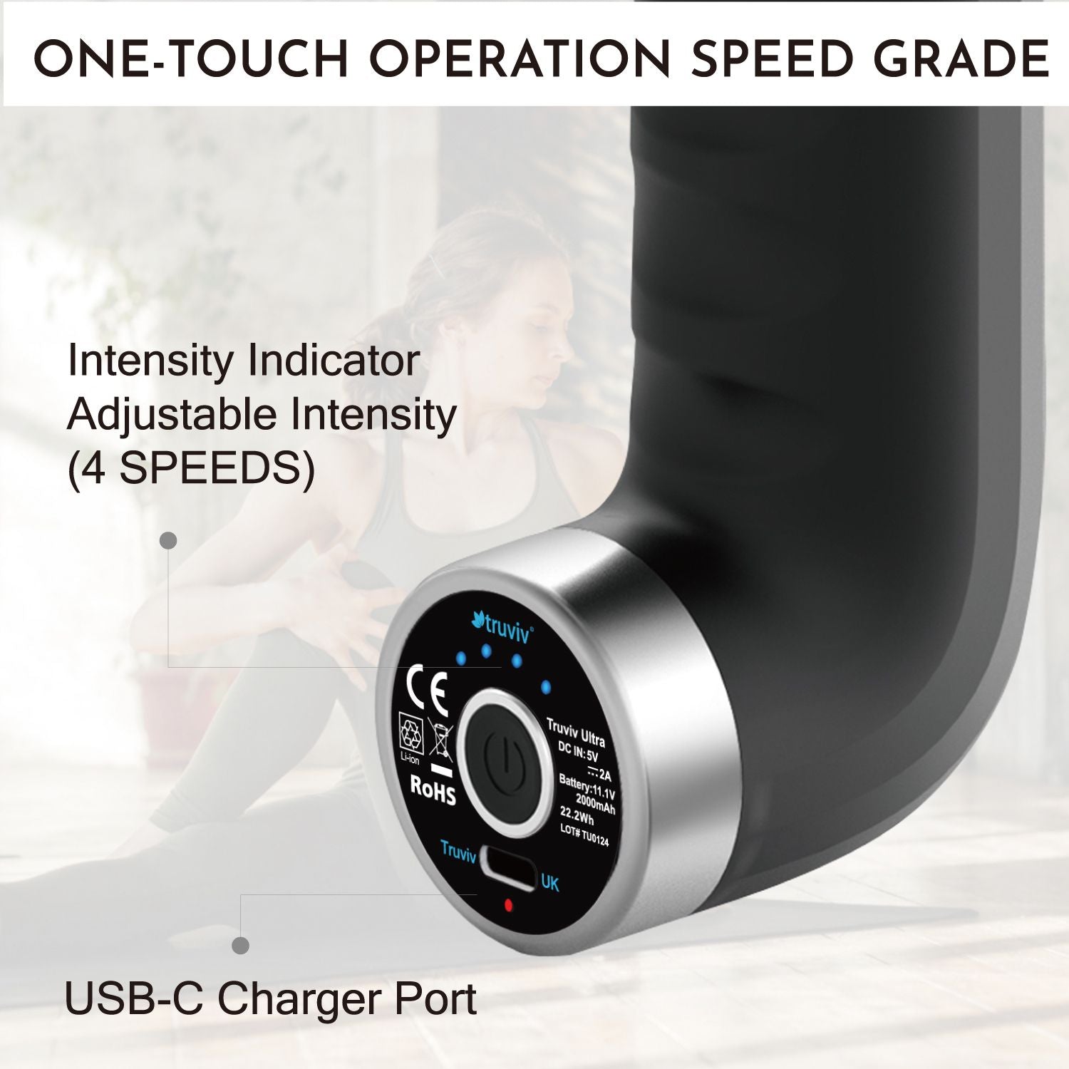 Introducing the Truviv Ultra Deep Tissue Percussion Massager your one-way ticket to muscle pain relief and pure relaxation in the comfort Of your own home. The Truviv Ultra massage technology uses the latest in percussion therapy to offer an effective and quick form of relief for tired and sore muscles.