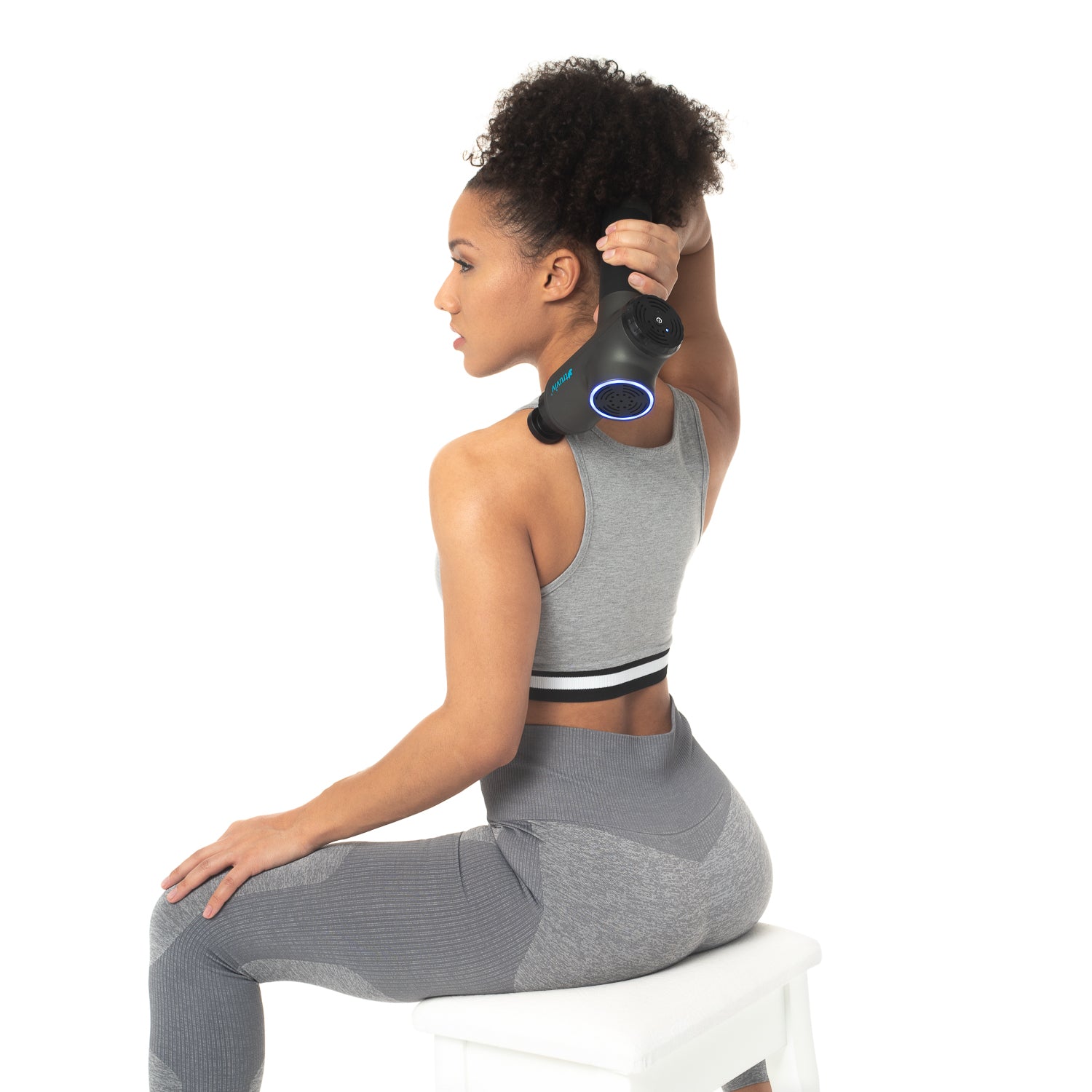 Designed to revolutionize the fitness industry, the Truviv Storm Massage Gun delivers the same therapeutic and pain management benefits as a professional massage therapist. Percussion Technology is proven to accelerate the growth and repair of tissues by heavily increasing blood flow to targeted areas. Used by top athletes to warm up, during workout and to speed up recovery after an intense sports session.