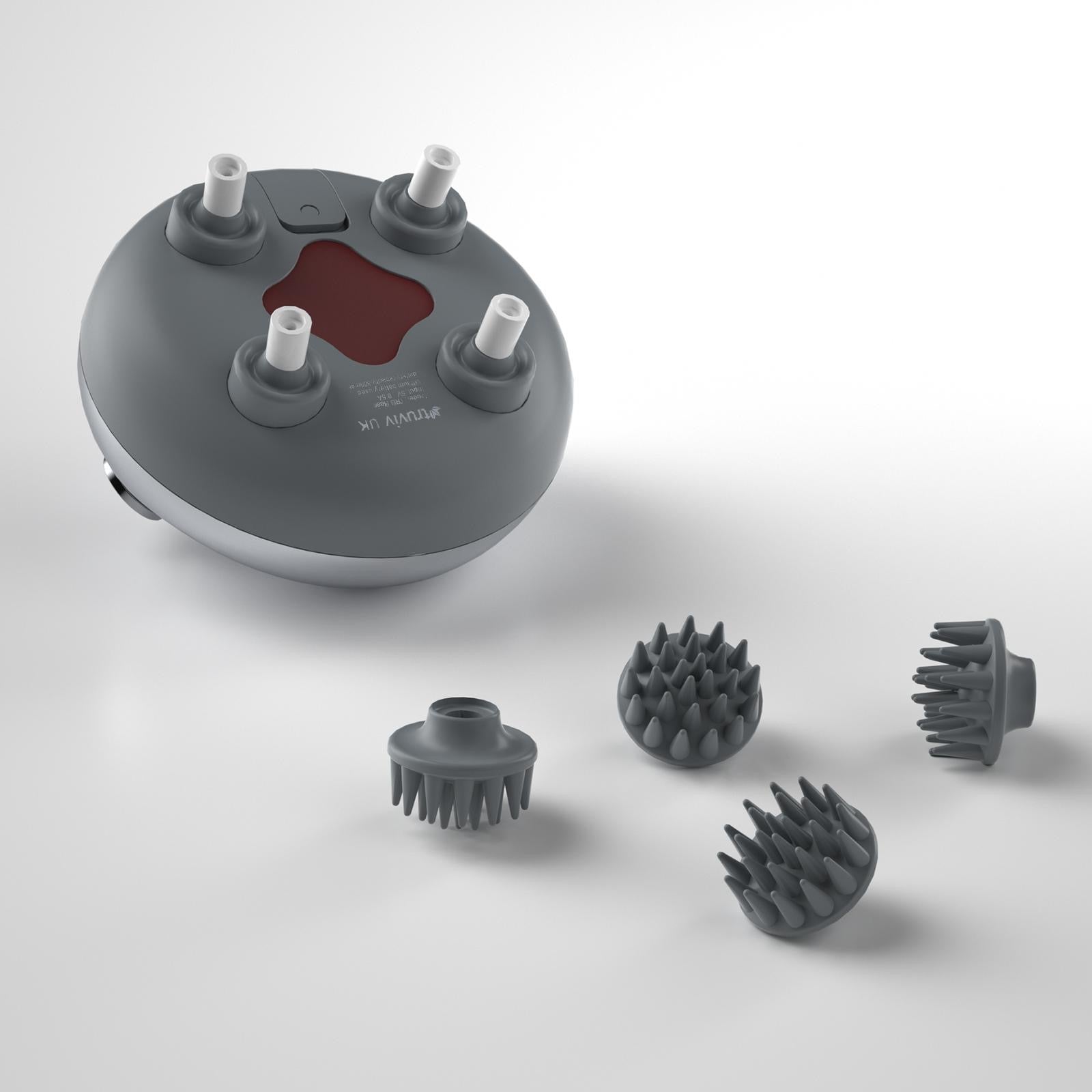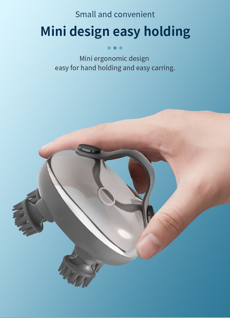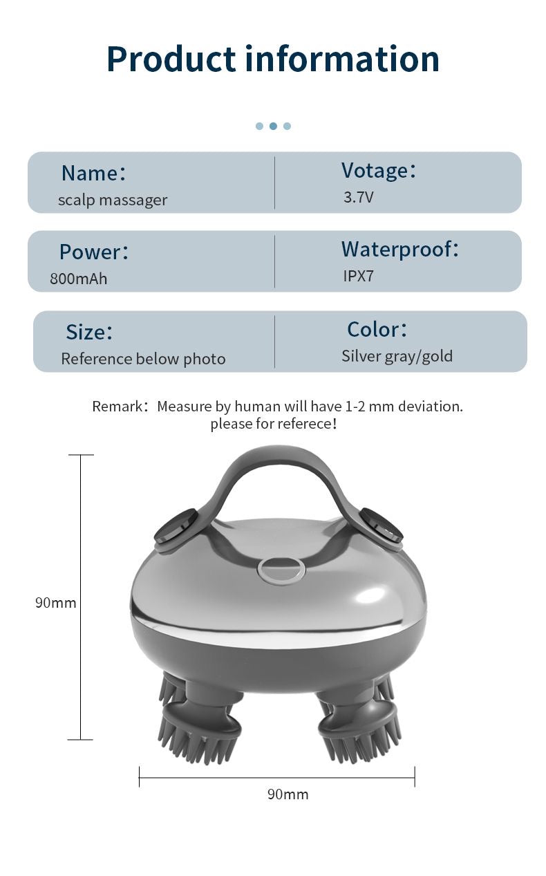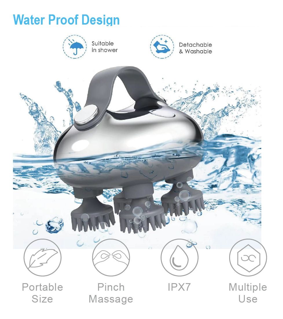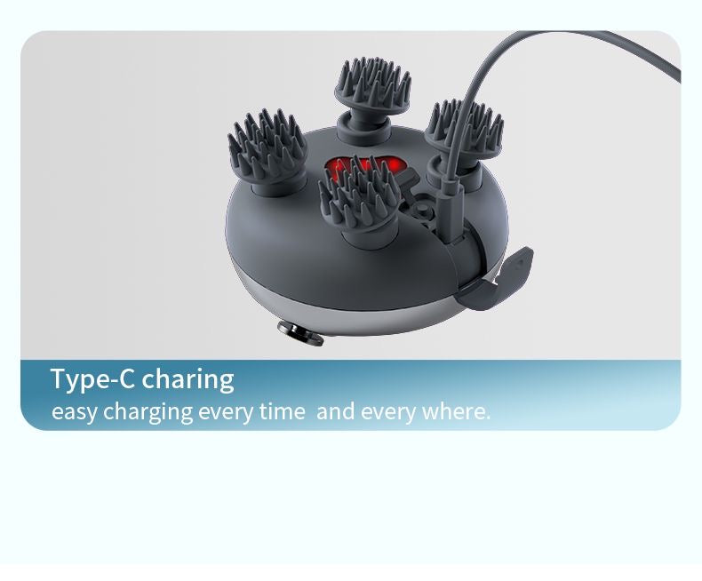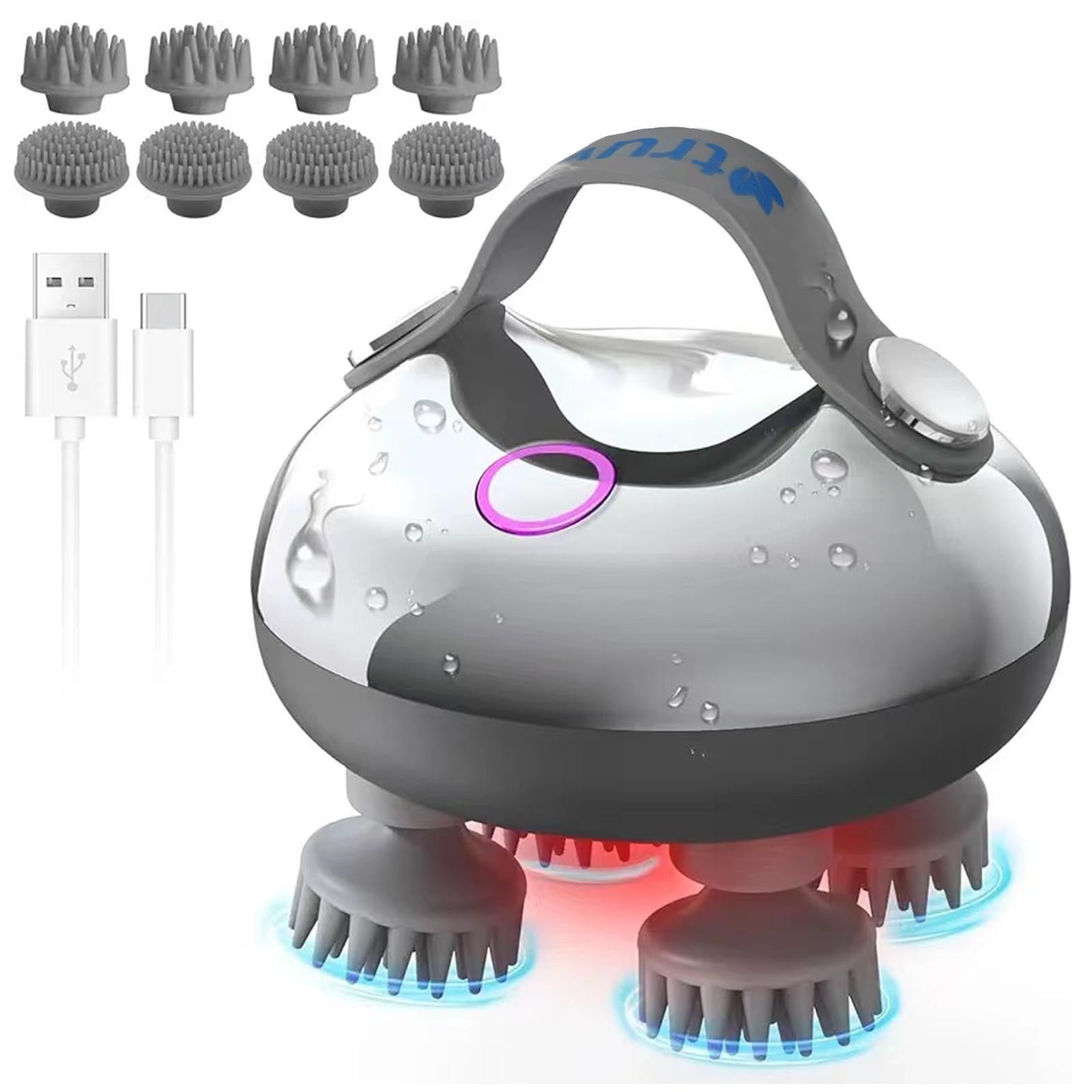 - This electric head massager offers a 360° massage experience, perfect for relieving tension, fatigue and discomfort. With 8 replaceable silicone massage heads, this head massager scalp promotes healthy blood flow to the scalp, stimulating the follicles to increase hair growth and healthier hair.